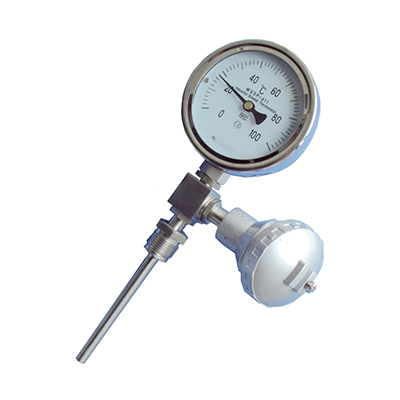 采用双金属温度计与热电偶/热电阻一体的方式,既满足现场测温需求,亦满足远距离传输需求,可以直接测量各种生产过程中的-80-+500℃范围内液体、蒸气和气体介质以及固体表面测温。
